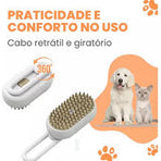 Ferramenta 3-em-1 para praticidade: escova, remoção de subpelo e massagem — tudo em um dispositivo fácil de usar.