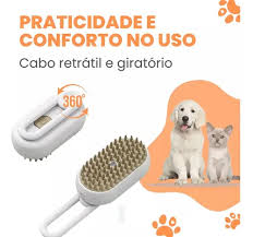 Imagine seu amigo de quatro patas com o pelo sedoso, sem nós, sem pelos mortos espalhados pela casa, e ainda com aquela fragrância suave de essência que transmite carinho. A escova a vapor 3-em-1 é exatamente isso: ela solta uma névoa leve de água + essência que hidrata e auxilia na remoção dos pelos soltos, enquanto a escova faz uma massagem gentil, promovendo circulação e relaxamento.